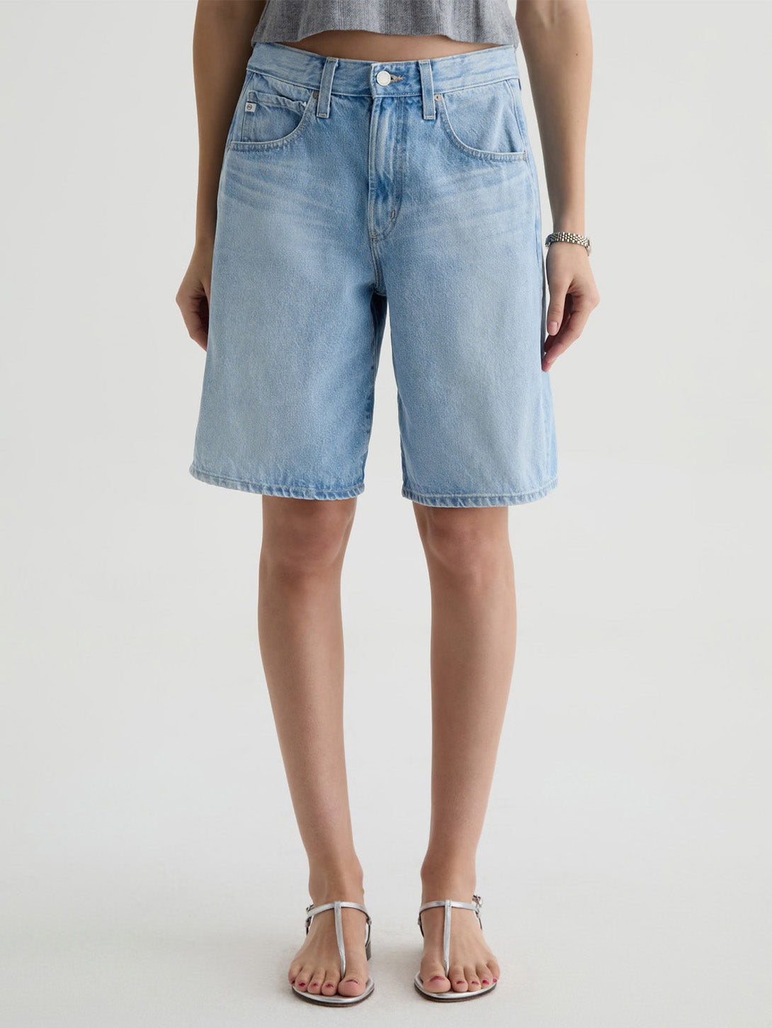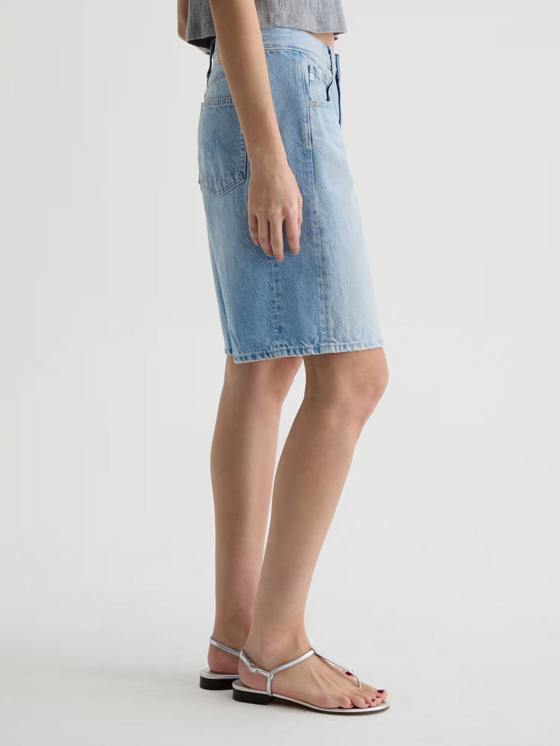 The Hattie Short is crafted in Sioux Rigid Denim from the renowned Candiani Mill in Italy. This Bermuda short features a high-rise, roomy leg, and relaxed fit throughout. Designed in our light blue wash, Mondrian, and finished with whiskering and fading for the perfect warm-weather short.
