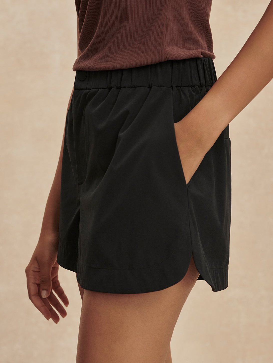 The Nila mid-rise shorts come in a lightweight Soft Stretch Woven fabric with a fully elasticated, gathered waistband for a perfect fitted waist, as well as a snap-fastening and zip at the centre front. Angled pockets at the side and a shaped hem add structure to the relaxed leg shape.