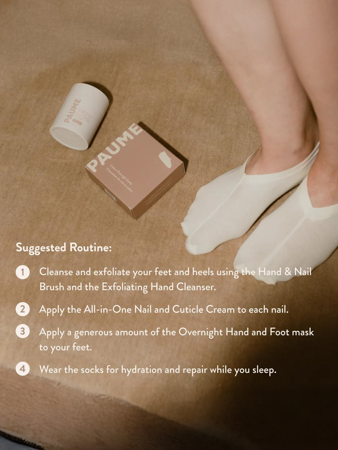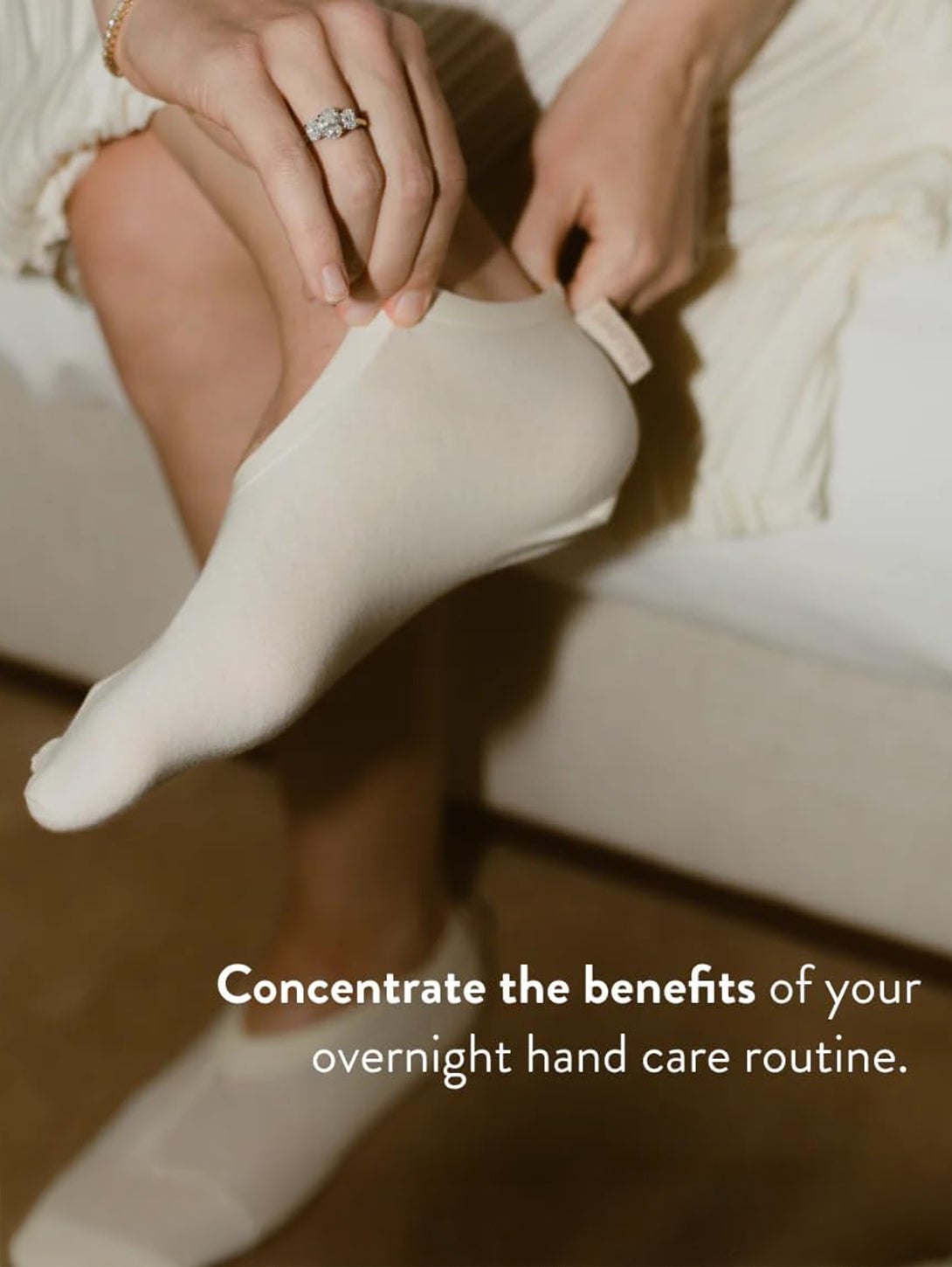 These Cotton Overnight Socks concentrate the moisturizing benefits of the Overnight Hand and Foot Hydration Mask when worn overnight, revealing soft, hydrated, conditioned heels and feet.