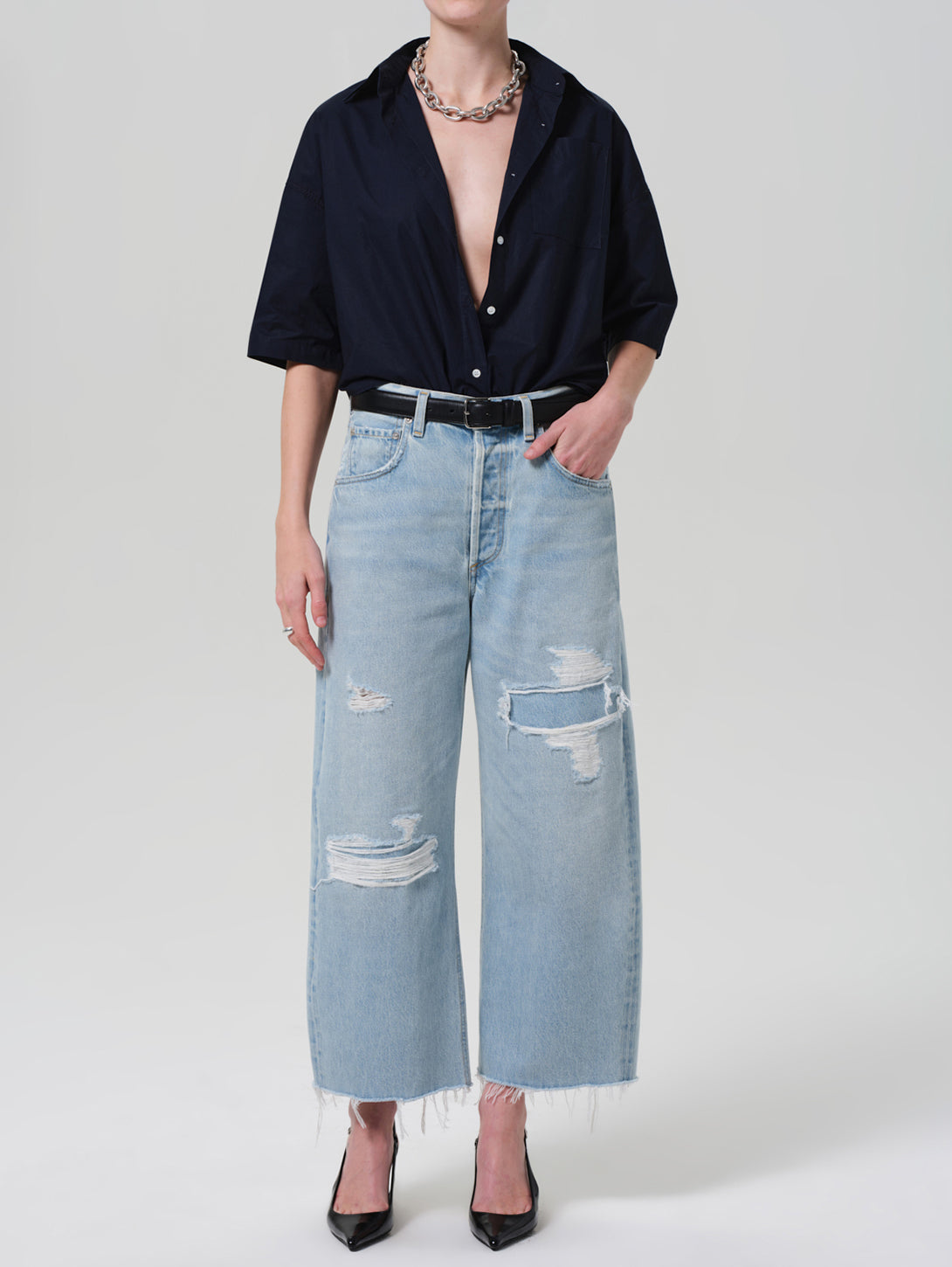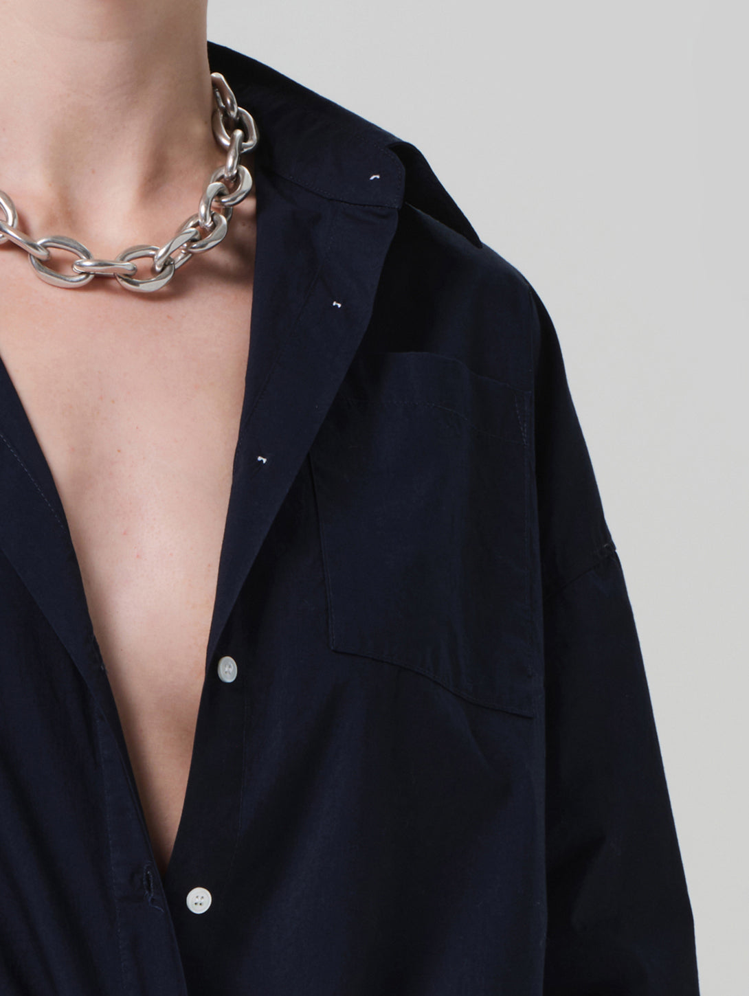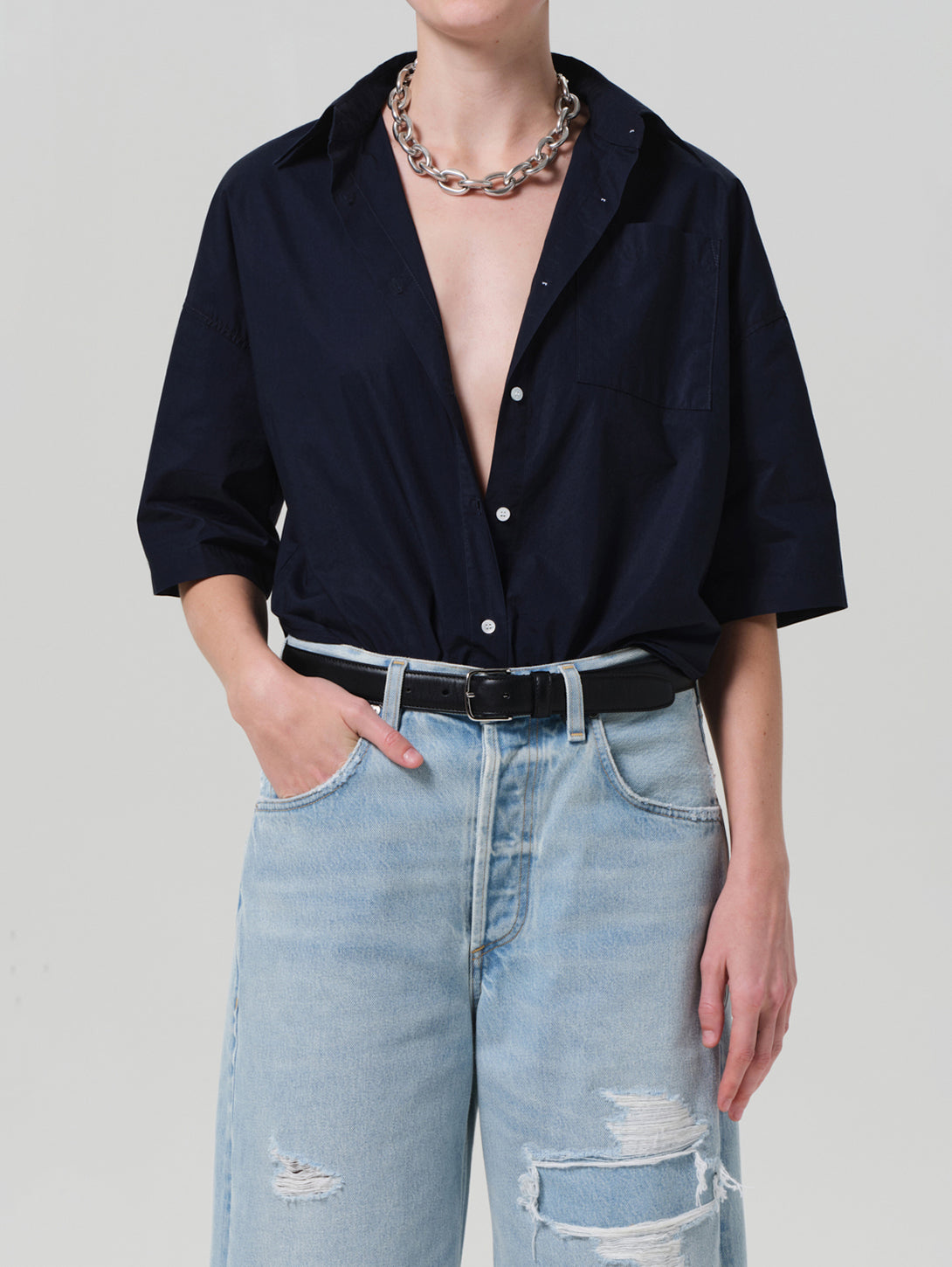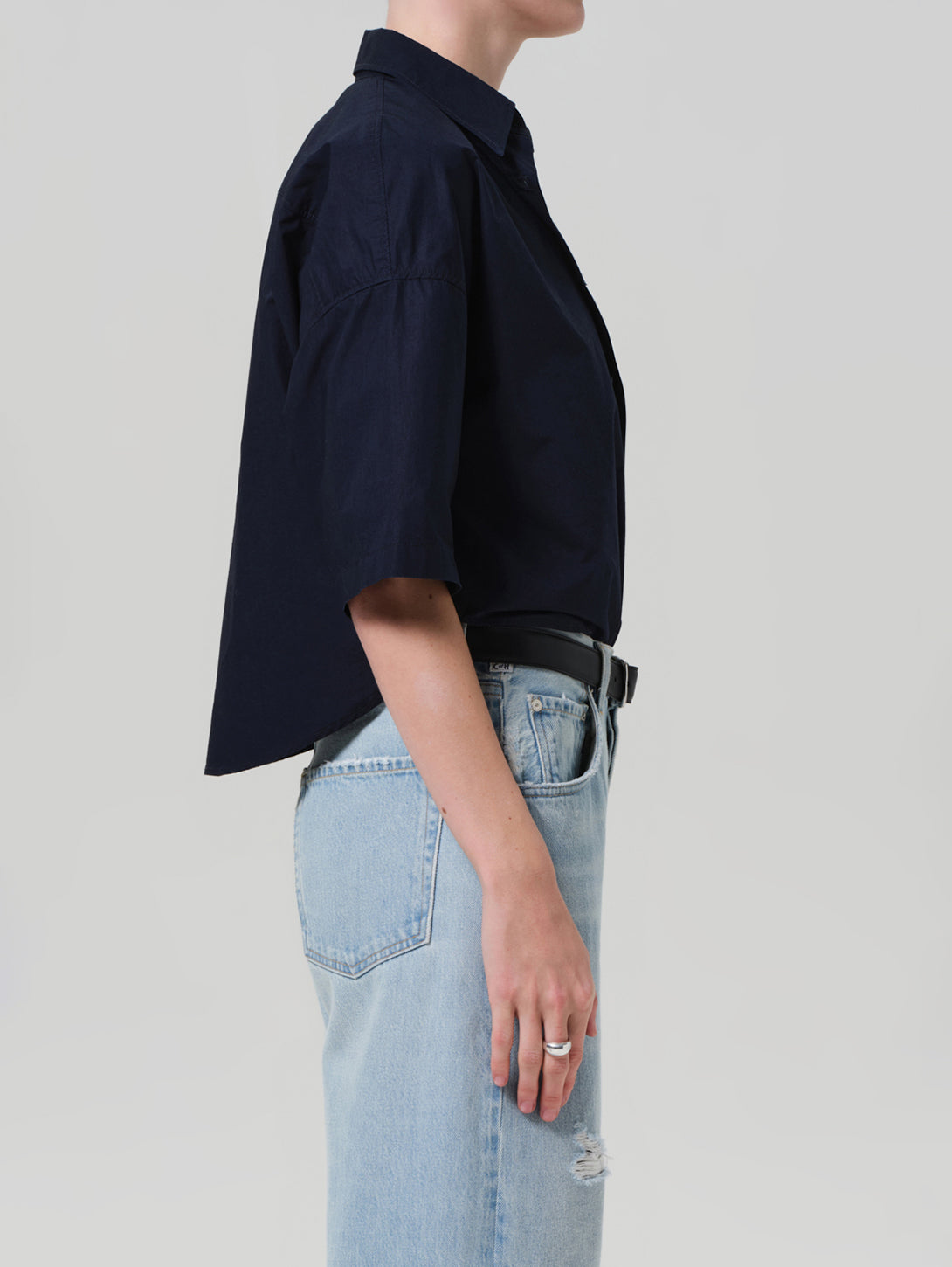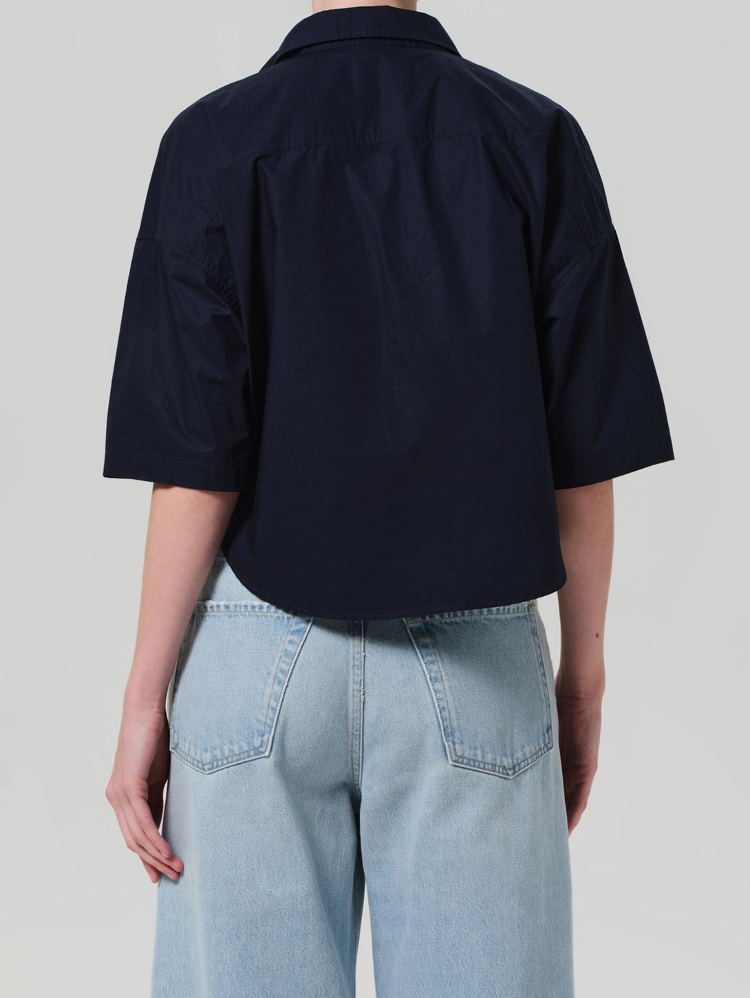 The Francis Cropped Cape Button-Up offers a fresh take on the classic button-down. Crafted from 100% cotton, it features expertly placed  seam details for a close, accentuating fit. The cropped silhouette adds a modern twist, making it the perfect piece to pair with high-waisted denim or a sleek skirt for an effortlessly elevated look.