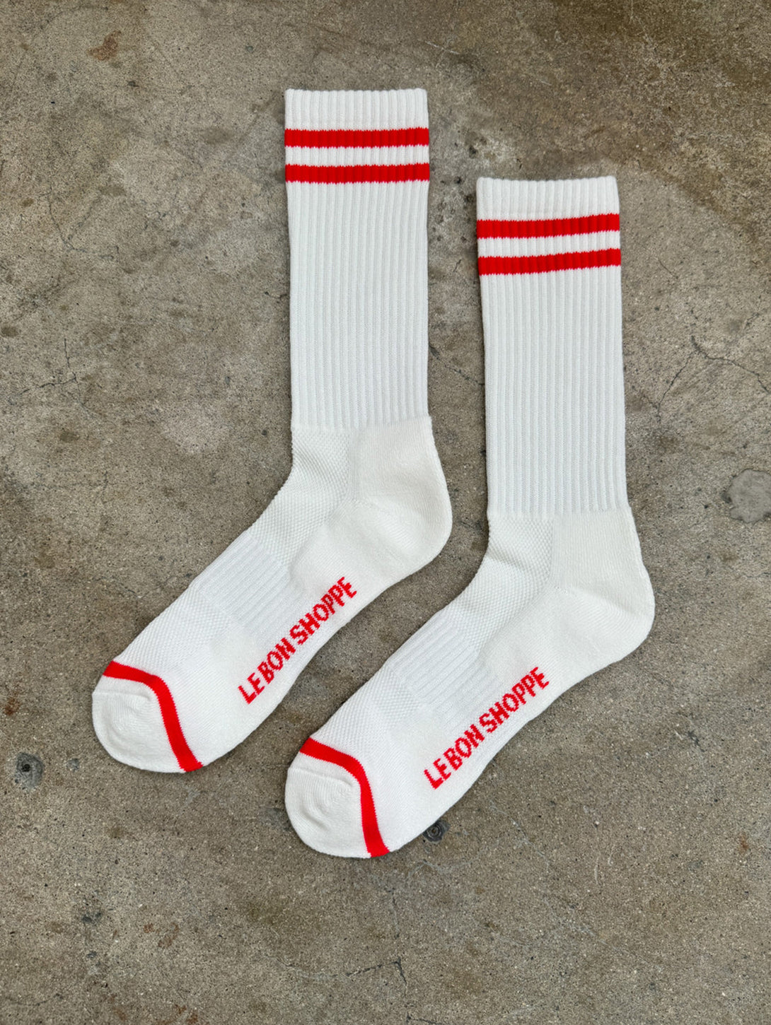 Due to popular demand we created the Boyfriend Socks in extended sizing, which is unisex and men-friendly! They maintain the same design as our bestseller and signature style, Boyfriend Socks, with a slightly bigger foot and longer leg. Their classic, vintage-sporty vibe can be styled with all of any daytime look or worn as the perfect lounge sock to keep your feet comfy at all times.