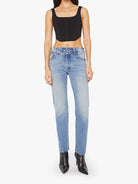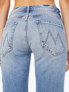 This slim straight-leg was adopted from our men’s line and features a mid rise, button fly, low-set back pockets and a clean hem. Made from a cotton blend, Fight For Your Right is a light wash blue with subtle fading and whiskering.