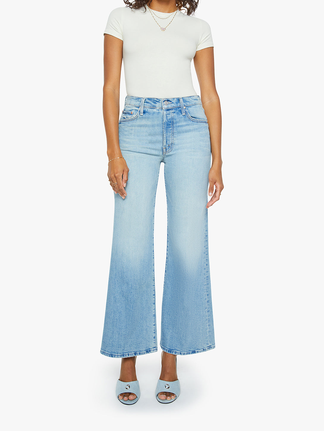 Truth's out. High-waisted wide-leg jeans with a button fly, 31-inch inseam and clean hem. Made from semi-rigid SUPERIOR denim, I Confess is a light blue with whiskering and fading at the knees.